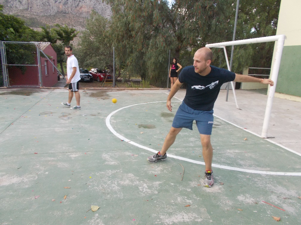 Y diwrnod wedyn cawsib bu nifer o sgyrsiau am themâu teb i’r rhai basem yn siarad amdanynt yn ysgol haf Plaid Ifanc, fel sut i redeg ymgyrch etholiadol lwyddiannus. Ond roedd rhai themau yn problemau yng Ngwlad Falensia ei hun, fel sut i ymladd yn erbyn hiliaeth tuag at pobl Roma. Wedi hyn gwnaethom wario tipyn o oriau wrth ymyl y pwll nofio. Ac ar ôl ein siesta hollbwysig, dysgais sut i chwarae gem draddodiadol o’r ardal, o’r enw Pilota Valenciana (fel tenis heb raced), ac roedd o’n wych!